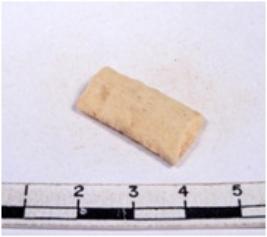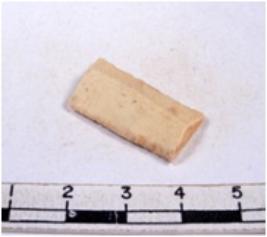 | Description / विवरण | A fragment of a rectangular shaped chert blade showing dorsal sides with sharp cutting edges having smooth surface and triangular section. |
