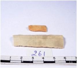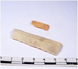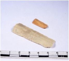 | Description / विवरण | A fragment of a rectangular shaped chert blade showing dorsal sides with sharp edges having smooth surface and triangular section. |