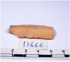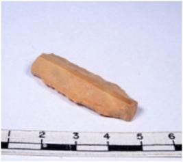 | Description / विवरण | A fragment of a rectangular shaped chert blade showing dorsal sides with sharp edges having smooth surface and triangular section. |