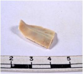 | Description / विवरण | A fragment of a rectangular shaped chert blade showing dorsal sides with sharp edges having smooth surface and triangular section. |