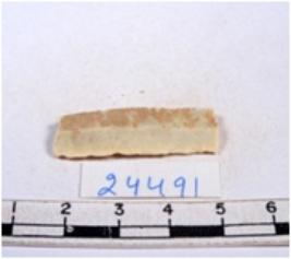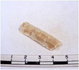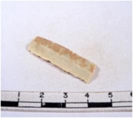 | Description / विवरण | A fragment of a rectangular shaped chert blade showing parallel sides with sharp edges having smooth surface and uneven section. |