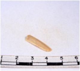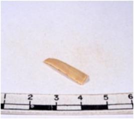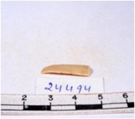 | Description / विवरण | A fragment of a rectangular shaped chert blade showing dorsal sides with sharp edges having smooth surface and triangular section. |