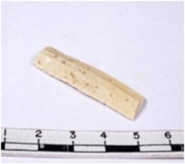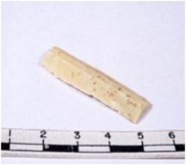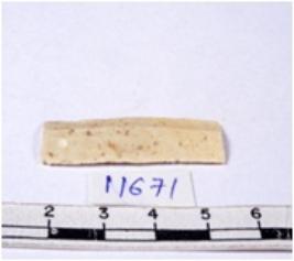 | Description / विवरण | A fragment of a rectangular shaped chert blade showing dorsal sides with sharp edges having smooth and triangular section. |