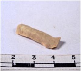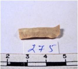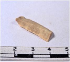 | Description / विवरण | A fragment of a rectangular shaped chert blade showing dorsal sides with sharp cutting edges having smooth surface and triangular section. |