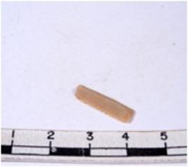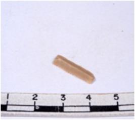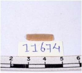 | Description / विवरण | A fragment of a rectangular shaped chert blade showing dorsal sides with sharp edges having smooth surface and triangular section. |