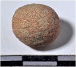 | Description / विवरण | A stone sling ball round in shape of rough surface. |