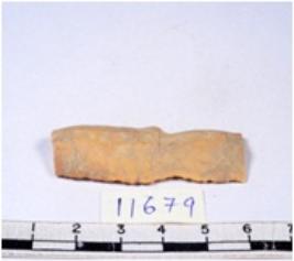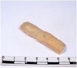 | Description / विवरण | A fragment of a rectangular shaped chert blade showing dorsal sides with sharp edges having smooth surface and triangular section. |