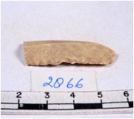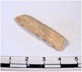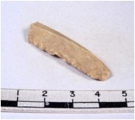 | Description / विवरण | A fragment of a rectangular shaped chert blade showing dorsal sides with sharp edges having smooth surface and triangular section. |
