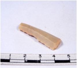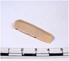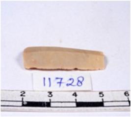 | Description / विवरण | A fragment of a rectangular shaped chert blade showing dorsal sides with sharp edges having smooth surface and triangular section. |