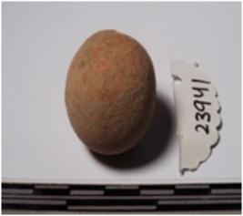 | Description / विवरण | A terracotta round in shaped sling ball of smooth surface. |