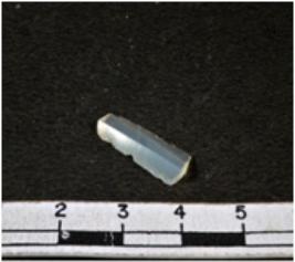 | Description / विवरण | A fragment of a rectangular shaped chalcedony blade showing dorsal sides with sharp edges having smooth surface and triangular section. |