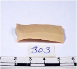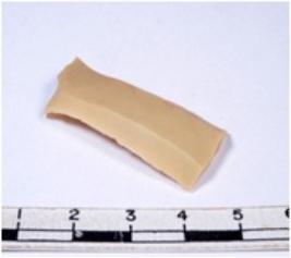 | Description / विवरण | A fragment of a rectangular shaped chert blade showing parallel sides with sharp cutting edges having smooth surface and uneven section. |