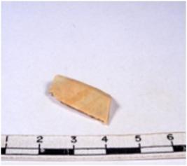 | Description / विवरण | A fragment of a rectangular shaped chert blade showing dorsal sides with sharp cutting edges having smooth surface and triangular section. |