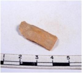 | Description / विवरण | A fragment of a rectangular shaped chert blade showing dorsal sides with sharp cutting edges having smooth surface and triangular section. |