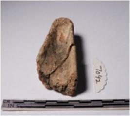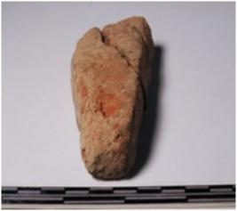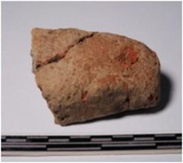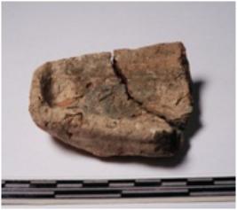 | Description / विवरण | A fragment of a terracotta long boat shaped crucible of smooth surface. |