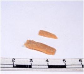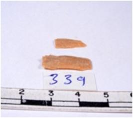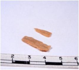 | Description / विवरण | A fragment of a rectangular shaped chert blade showing dorsal sides with sharp edges having smooth surface and triangular section. |