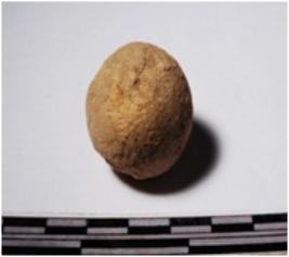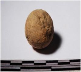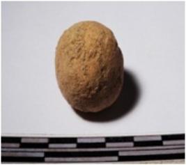 | Description / विवरण | A terracotta round in shaped sling ball of rough surface. |