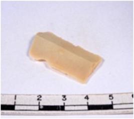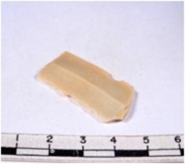 | Description / विवरण | A fragment of a rectangular shaped chert blade showing dorsal sides with sharp edges having smooth surface and triangular section. |