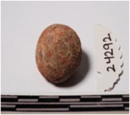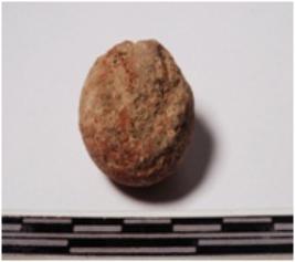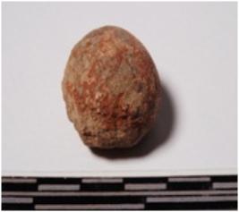 | Description / विवरण | A terracotta round in shaped sling ball of rough surface. |