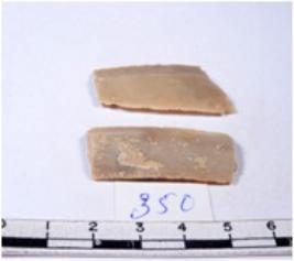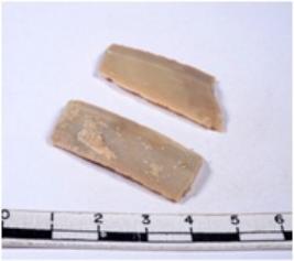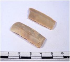 | Description / विवरण | A fragment of a rectangular shaped chert blade showing dorsal sides with sharp edges having smooth surface and triangular section. |