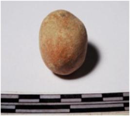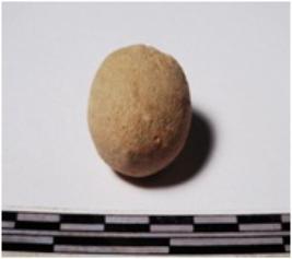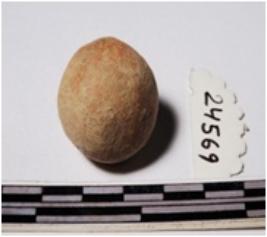 | Description / विवरण | A terracotta round in shaped sling ball of smooth surface. |