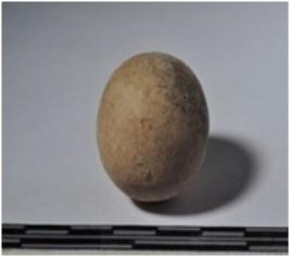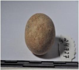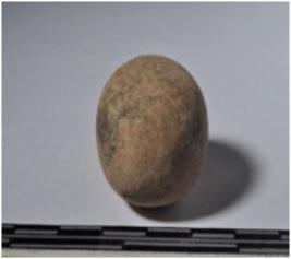 | Description / विवरण | A terracotta sling ball, round in shaped and rough surface. |
