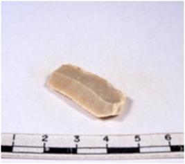 | Description / विवरण | A fragment of a rectangular shaped chert blade showing dorsal sides with sharp edges having smooth surface and triangular section. |
