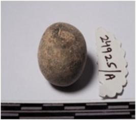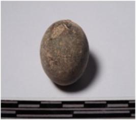 | Description / विवरण | A terracotta sling ball round in shape of smooth surface. |