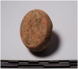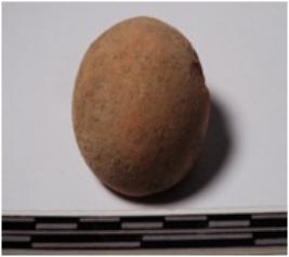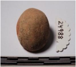 | Description / विवरण | A fragment of a terracotta round in shaped sling ball, circular in section of smooth surface. |