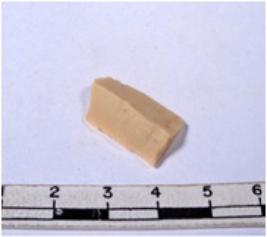 | Description / विवरण | A fragment of a rectangular shaped chert blade showing dorsal sides with sharp cutting edges having smooth surface and triangular section. |