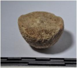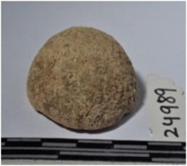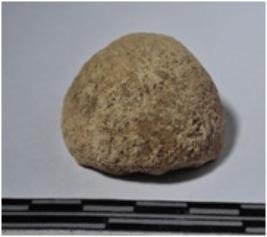 | Description / विवरण | A fragment of a terracotta round shaped sling ball of smooth surface. |