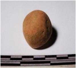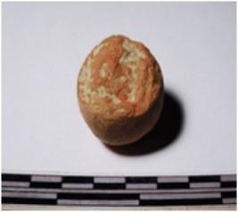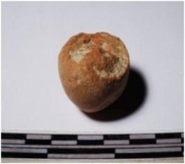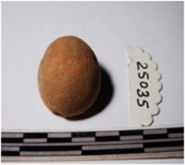 | Description / विवरण | A fragment of a terracotta round shaped sling ball, circular in section of smooth surface. |