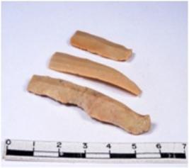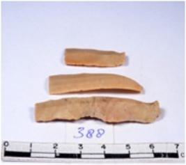 | Description / विवरण | A fragment of a rectangular shaped chert blade showing dorsal sides with sharp edges having smooth surface and triangular section. |