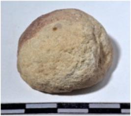 | Description / विवरण | A fragment of a stone sling ball, circular in section of rough surface. |
