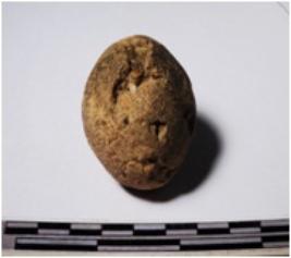 | Description / विवरण | A fragment of a terracotta round shaped ball of rough surface. |