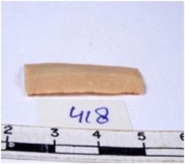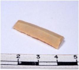 | Description / विवरण | A fragment of a rectangular shaped chert blade showing parallel sides with sharp edges having smooth surface and triangular section. |