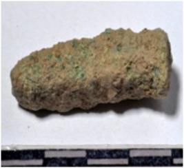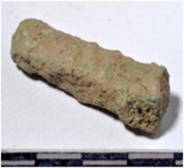 | Description / विवरण | A fragment of a copper chisel circular in section broken from both end of rough surface. |