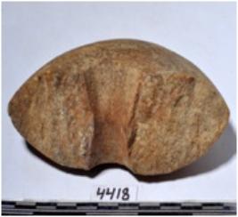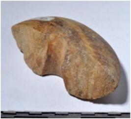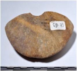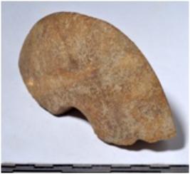 | Description / विवरण | A fragment of a stone mace head, circular in shape having hole, triangular in section of smooth surface. |