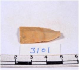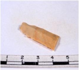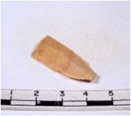 | Description / विवरण | A fragment of a rectangular shaped chert blade showing dorsal sides with sharp edges having smooth surface and triangular section. |