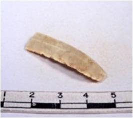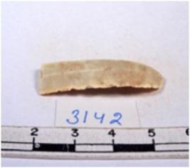 | Description / विवरण | A fragment of a rectangular shaped chert blade showing dorsal sides with sharp edges having smooth surface and triangular section. |