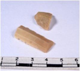 | Description / विवरण | A fragment of a rectangular shaped chert blade showing dorsal sides with sharp edges having smooth surface and triangular section. |