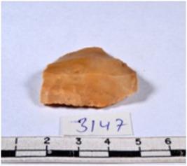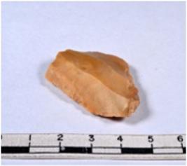 | Description / विवरण | A fragment of a rectangular shaped chert blade showing dorsal sides with sharp cutting edges having smooth surface and triangular section. |