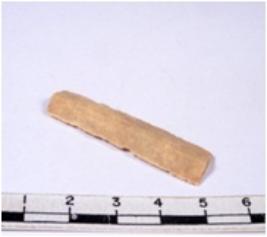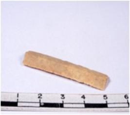 | Description / विवरण | A fragment of a rectangular shaped chert blade showing dorsal sides with sharp edges having smooth surface and triangular section. |