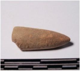 | Description / विवरण | A fragment of a terracotta point conical in shape of smooth surface. |
