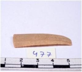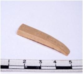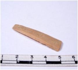 | Description / विवरण | A fragment of a rectangular shaped chert blade showing dorsal sides with sharp edges having smooth surface and triangular section. |