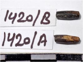 | Description / विवरण | A fragment of a stone drill bit, circular in section, pointed one end of smooth surface. |