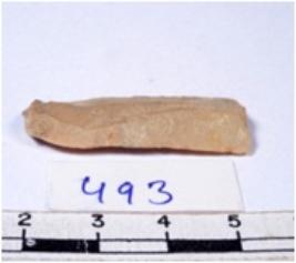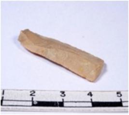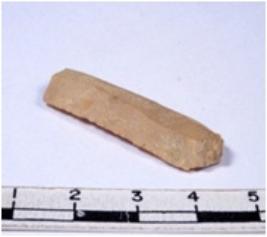 | Description / विवरण | A fragment of a rectangular shaped chert blade showing dorsal sides with sharp edges having smooth surface and triangular section. |