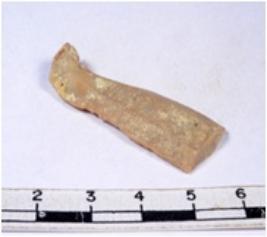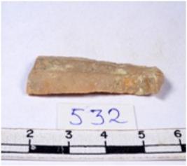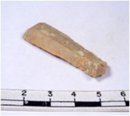 | Description / विवरण | A fragment of a rectangular shaped chert blade showing dorsal sides with sharp cutting edges having smooth surface and triangular section. |