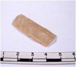 | Description / विवरण | A fragment of a rectangular shaped chert blade showing dorsal sides with sharp edges having smooth surface and triangular section. |
