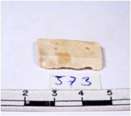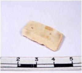 | Description / विवरण | A fragment of a rectangular shaped chert blade showing dorsal sides with sharp edges having smooth surface and triangular section. |